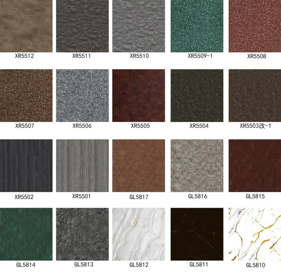 Покрај горенаведените три материјали, декоративните филмови вклучуваат и оние од камен и кожа.